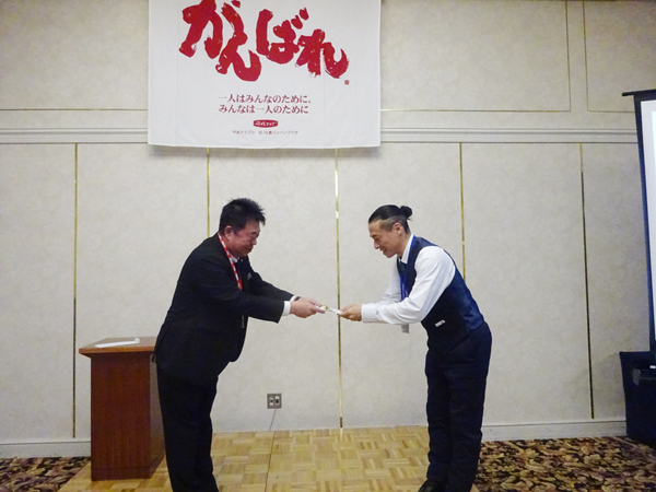 「友二」筒井 友二様 に、橋爪代表よりお祝いが贈られました。
